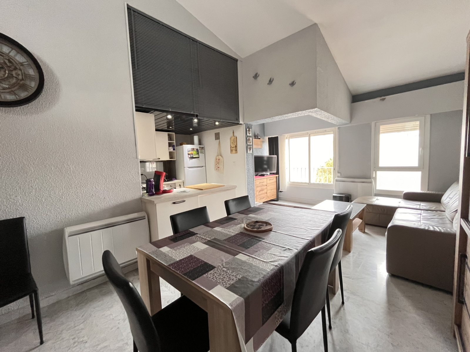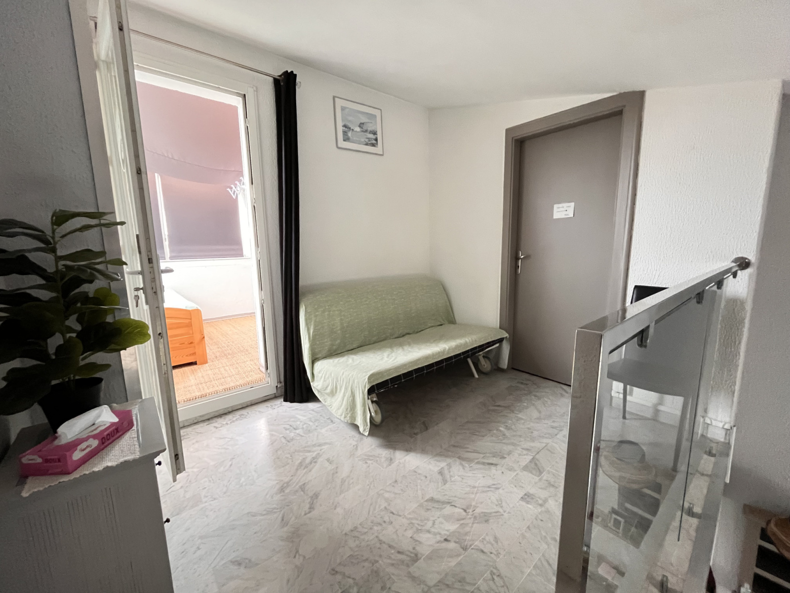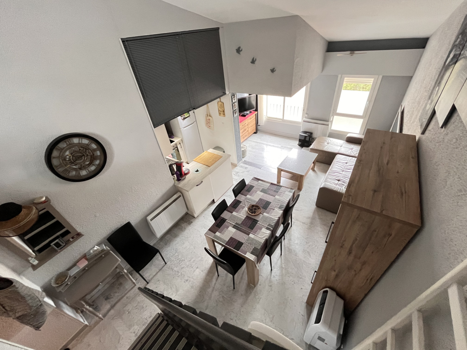 A VENDRE,situé au 4 e étage ( sans ascenseur ) appartement en duplex rénové avec au 1 er niveau, séjour cuisine SDE, wc séparé, 1 chambre, a l'étage mezzanine offrant un espace bureau donnant sur une terrasse couverte d'environ 7 m² et une grande chambre avec dressing.